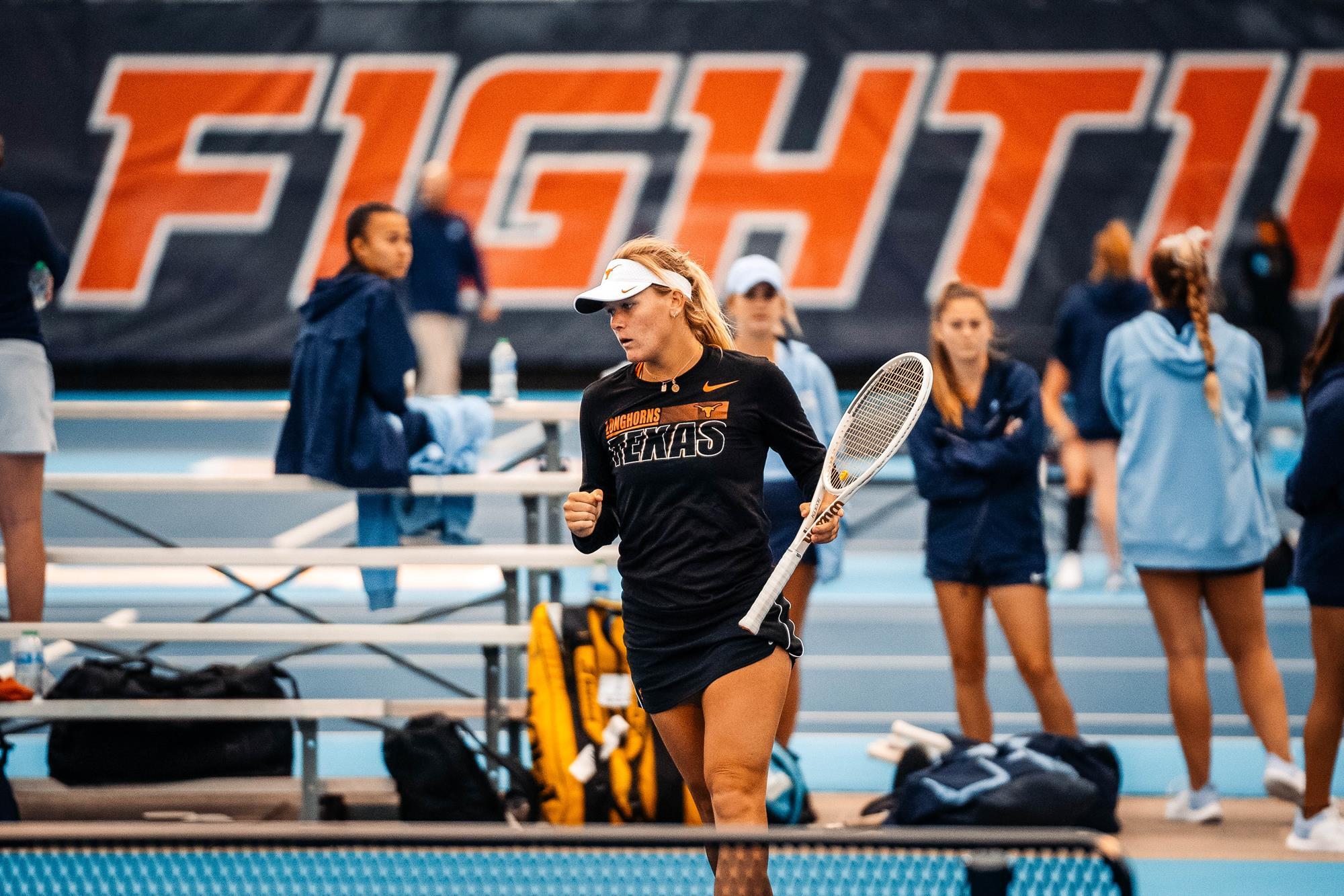 Texas began the evening winning the doubles to take the first point of the match. The Longhorns swept the doubles field.