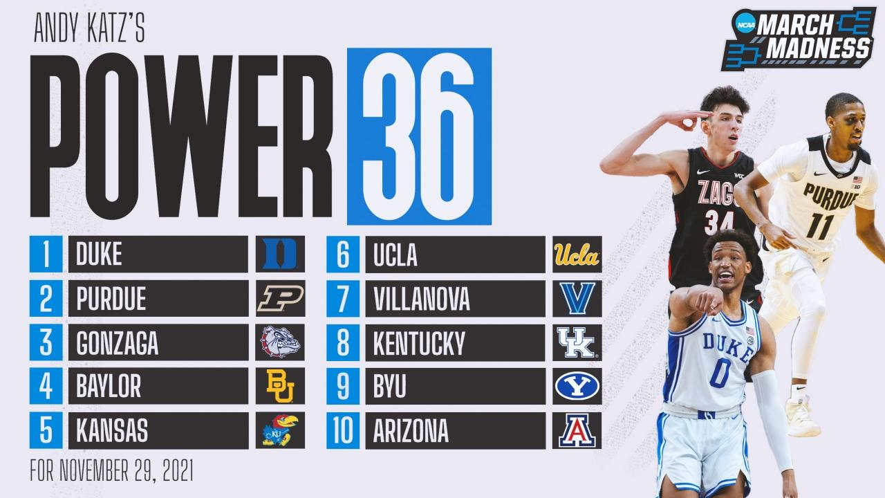 Duke and Purdue battle for No. 1 spot in Andy Katz's latest Power 36 rankings
