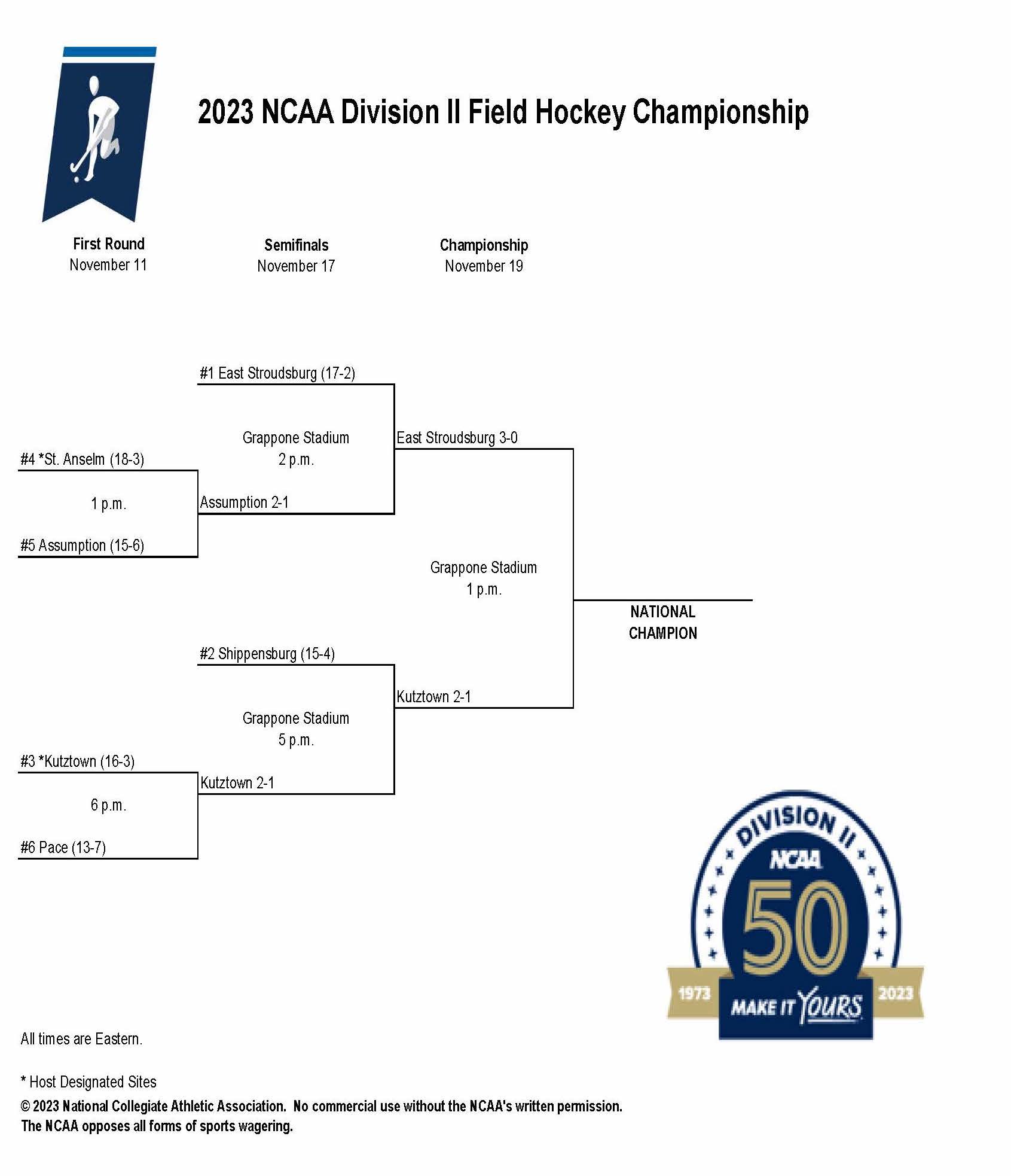 Kutztown has won the 2023 Division II field hockey championship by knocking off defending champion East Stroudsburg 2-1 at Grappone Stadium in Manchester, NH.