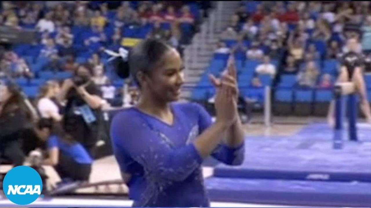 Due to the nature of score building in the sport, it may seem like gymnasts competing with teams are at more of an advantage to win an individual national title than those gymnasts that qualify to nationals without their team. However, solo individuals have won titles in the past, including Auburnâs Derrian Gobourne on vault in 2019, Denverâs Nina Magee on floor in 2016 and most famously Kentuckyâs Jenny Hansen, who won the national all-around title three consecutive times from 1993 to 1995.