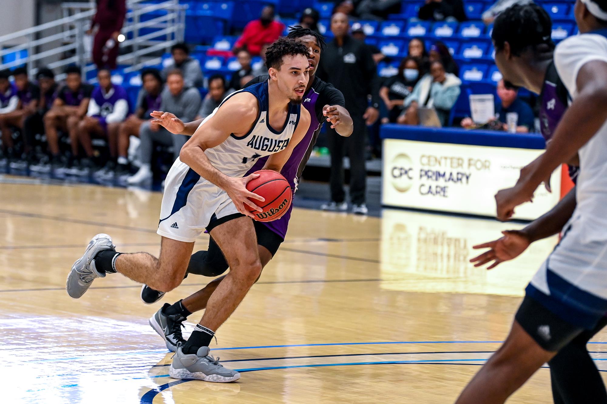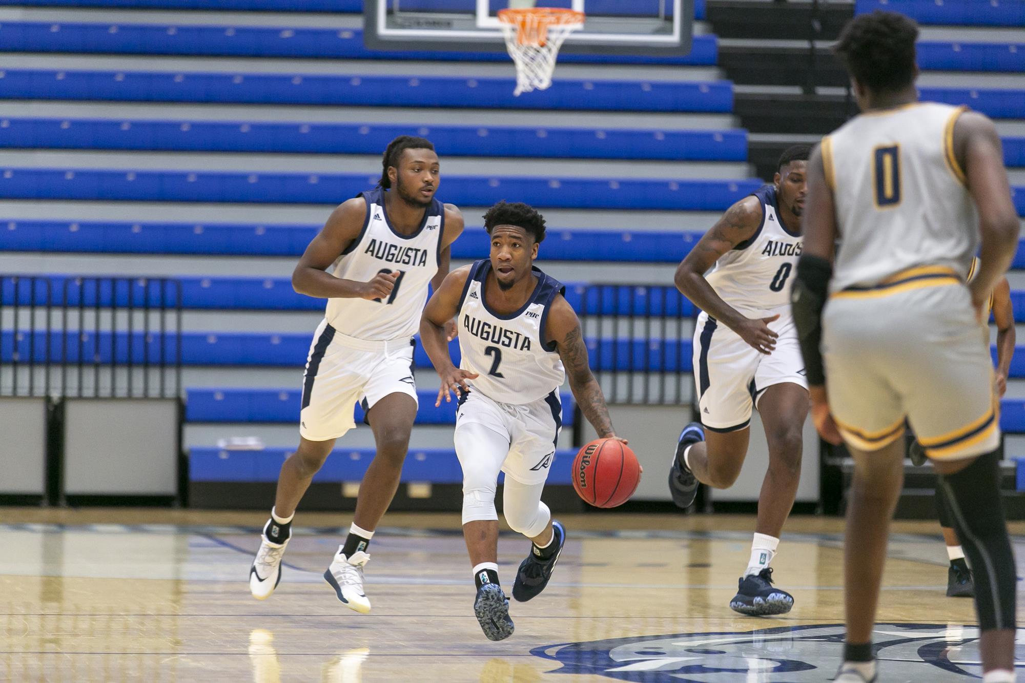 Fueled by a 10-0 run with star big man Tyshaun Crawford on the bench, Augusta has been able to keep the game in check heading into the final six minutes of play. It was a group effort with baskets by Darren Lucas-White, Ja'Queze Kirby and Tyree Martin leading the way. The Jaguars have been more aggressive, attacking the boards and have been getting to the free throw line, but need to convert more down the stretch, just 13-for-21 from the charity stripe.
