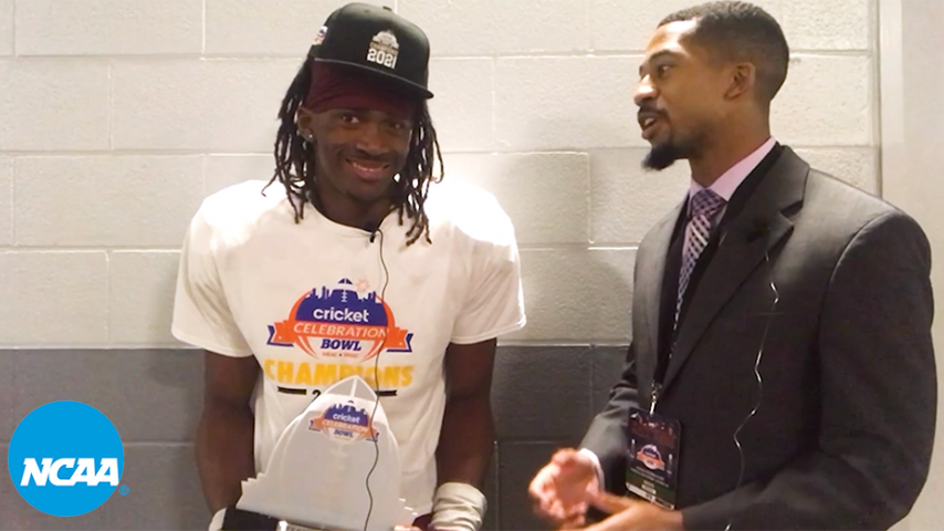 Celebration Bowl Offensive MVP Shaquan Davis speaks after the win