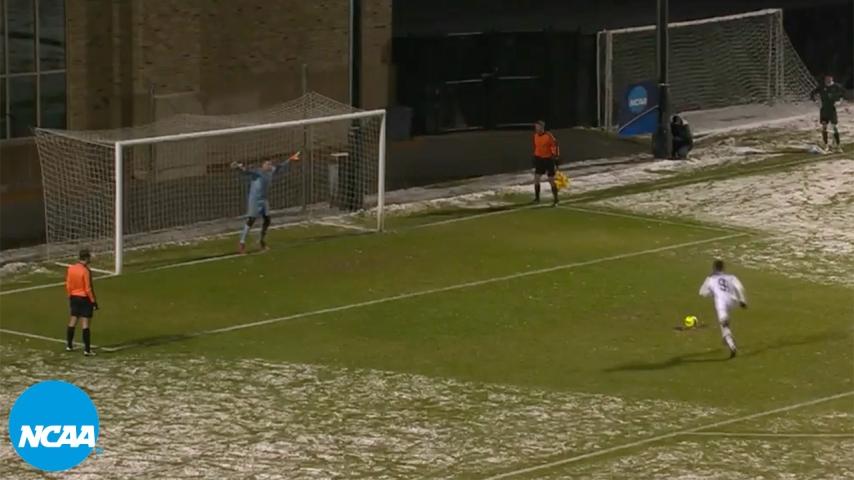 After 110 minutes of scoreless snowy play, the Fighting Irish prevailed with five perfect PK shots and a huge save to end Western Michigan's enthralling run into the tournament.