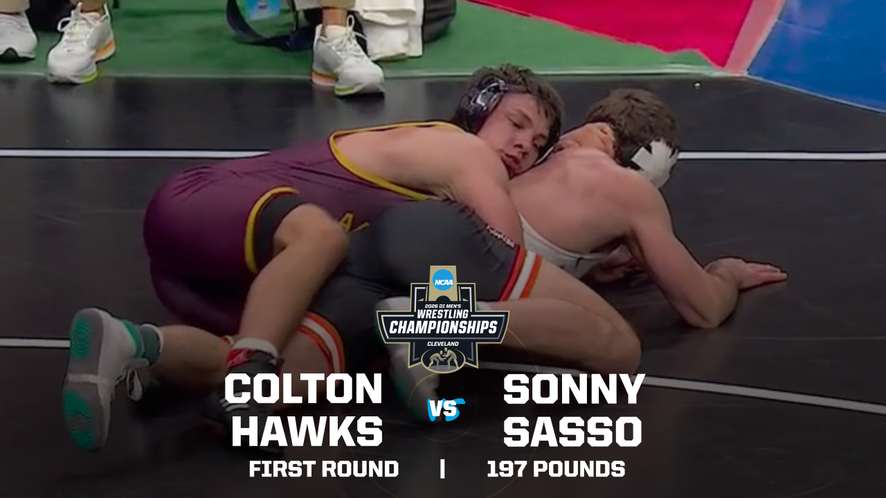 No. 3 Brock Hardy picks up the first takedown in his quarterfinal match against No. 6 Vince Cornella of Cornell. Takedown Cornella. Hardy escapes and leads 5-3 heading into the third period. Shot from Cornella. One minute to go. Hardy holds on for the 5-3 win, and he's back into the semifinals.