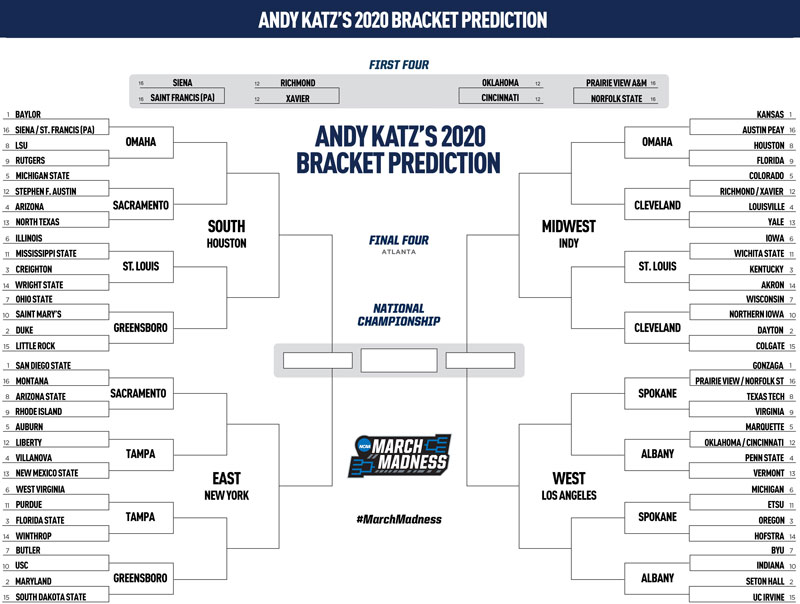NCAA predictions: Andy Katz's projections for the 2020 tournament bracket