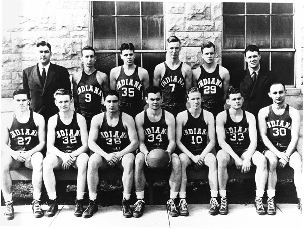 Marv Huffman (34) was named most outstanding player for 1940. The Hoosiers defeated Kansas, 60-42, for the NCAA title in Kansas City, Missouri.