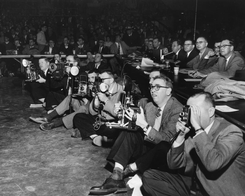 The photo corps at the 1958 title game in Louisville at Freedom Hall.