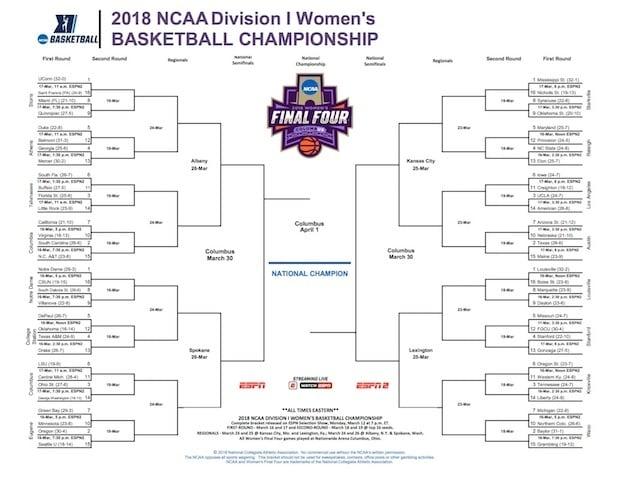 Here's the official women's NCAA tournament .PDF