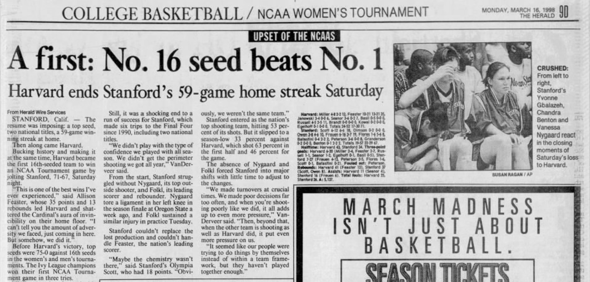 NCAA Video Vault: Reliving the first-ever 16-over-1 upset, when the Harvard women toppled Stanford