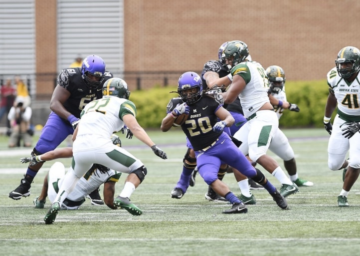 Fueled by a deep and talented backfield, JMU defeated Norfolk State 75-14 after rushing for 472 yards and seven touchdowns, which were scored by six different players. Trai Sharp led the way with nine rushes for 130 yards and one touchdown.