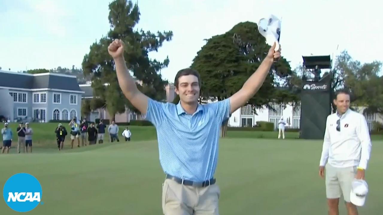 With both teams vying for the first team national championship in school history, it came down to the fifth match of the day between Auburn senior J.M. Butler and Florida State sophomore Luke Clanton. Butler never trailed in the close match and clinched the national championship on hole No. 17 as both he and Clanton had pars. Clanton came close to chipping in for birdie on the hole, but his chip shot from off the green hit the cup and bounced away. Butler then lagged a putt within inches of the cup as the match was conceded, with Butler winning 2&1.