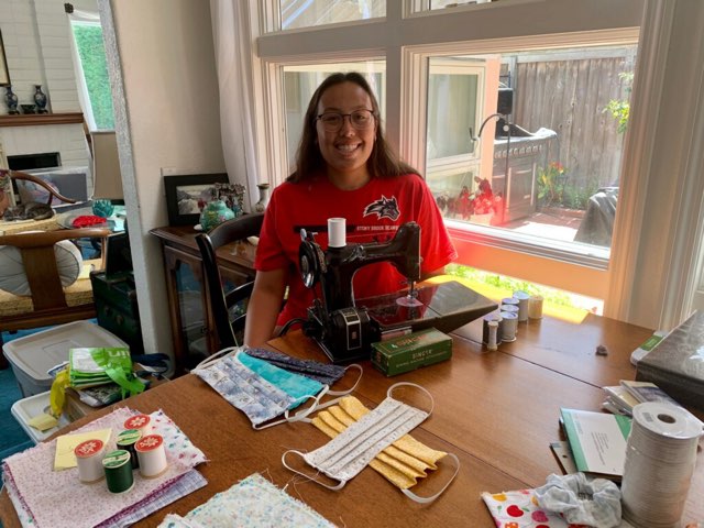But that is the scene where Sara Chin, a junior swimmer at Stony Brook, has set up shop with her mom since leaving campus a month ago. Chin is sewing desperately needed masks for medical workers, community members, grocery employees and other people working on the front lines.