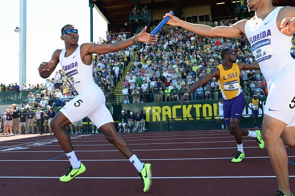 The 11,482 fans remained in their seats at Hayward Field for the 2013 NCAA outdoor track and field championship's final event, the men's 4x400 meter relay. The men's title would be decided as two teams, Texas A&M and Florida, vied for the championship. No one could've predicted what would happen next.